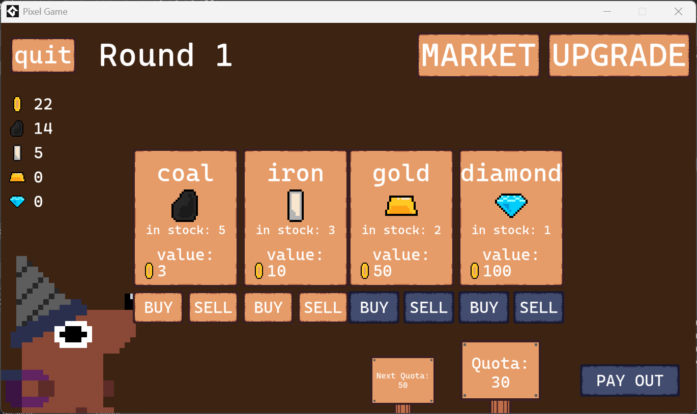 Dash into walls to start drilling. Drill into ores to collect materials, which can then either be sold at the market or used to upgrade your drill. Keep going until you can't go any further!